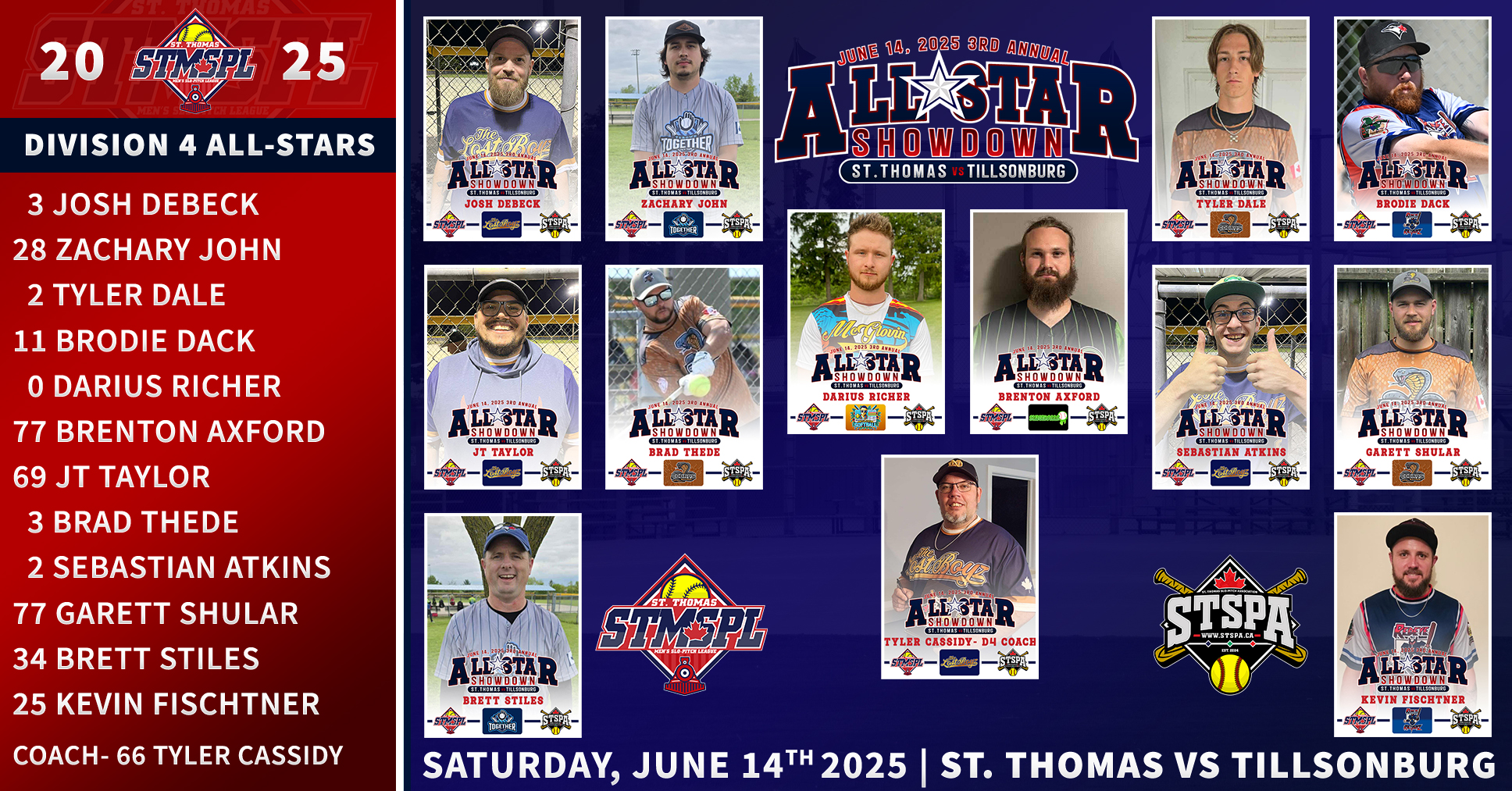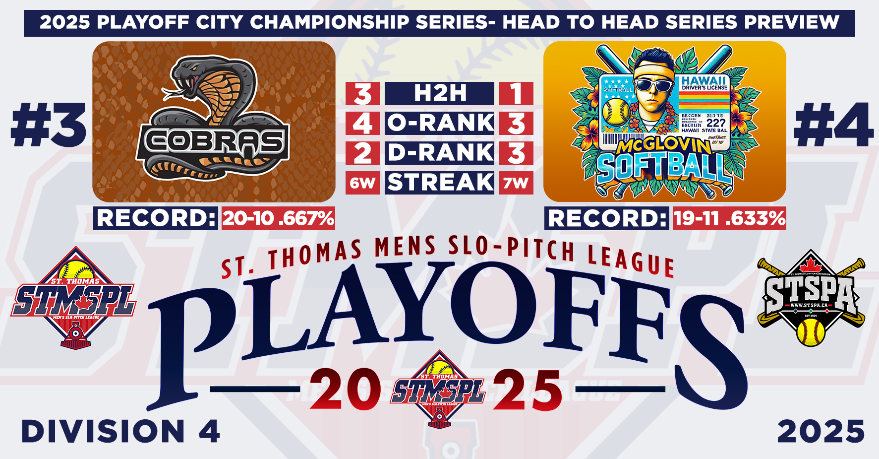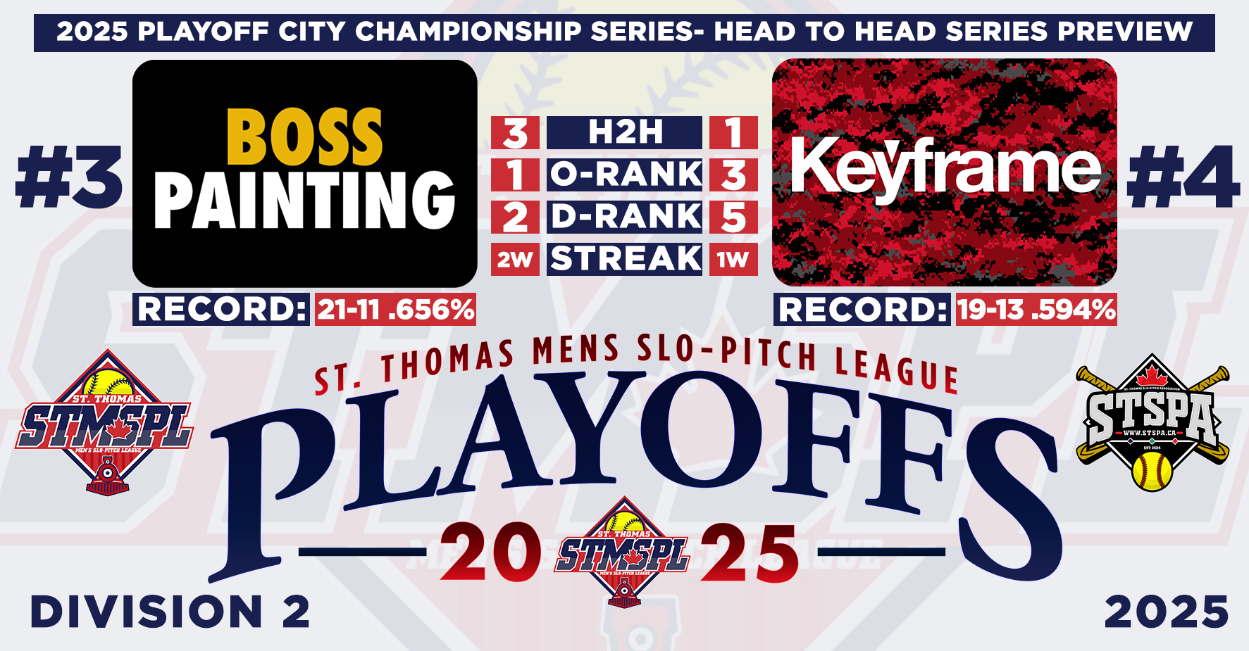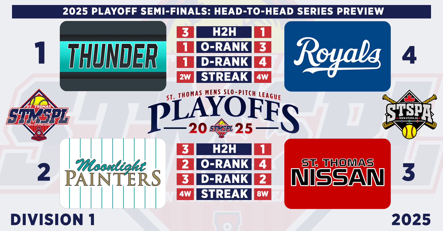 | 3 | St. Thomas Nissan | 26 | 17 | 9 | .654 | 5 | 346 | 280 | 66 | 6W | 10-3 | 7-6 | ||