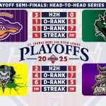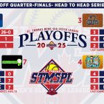 | 3 | Hitmen | 26 | 16 | 10 | .615 | 7 | 347 | 295 | 52 | 8W | 9-4 | 7-6 | ||