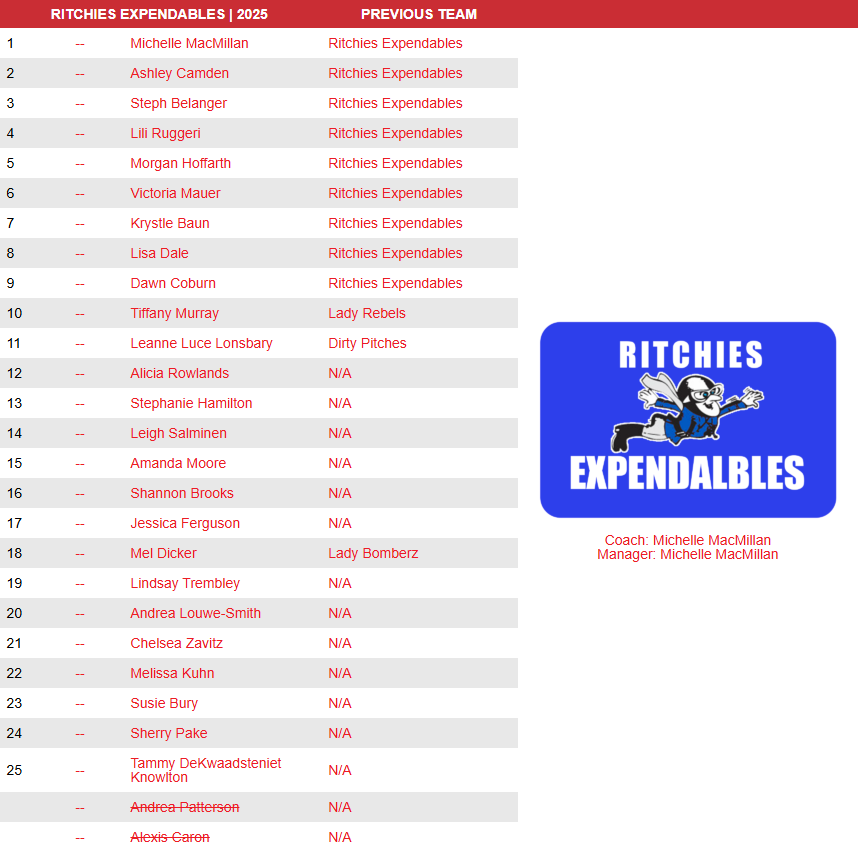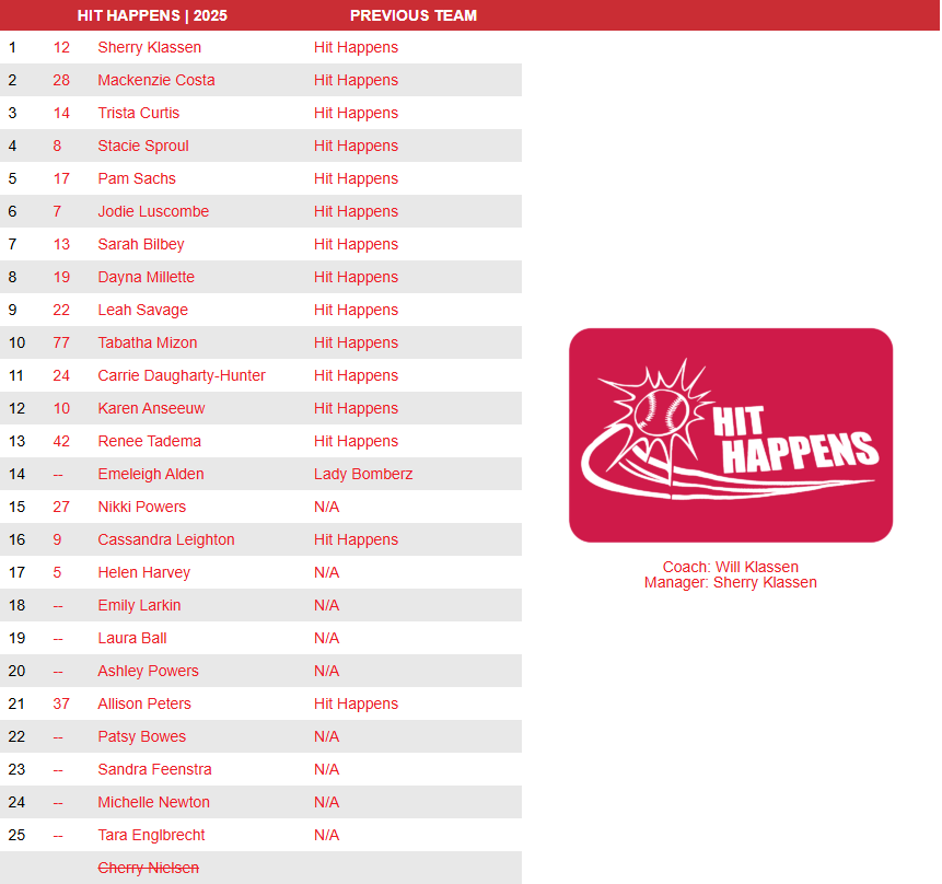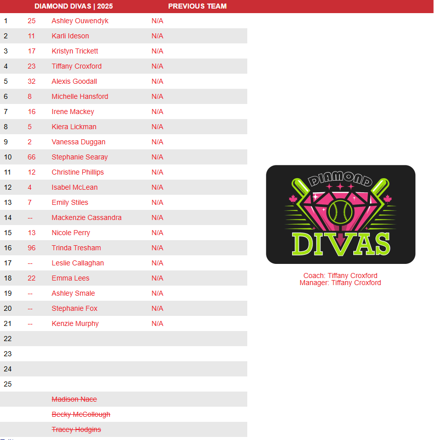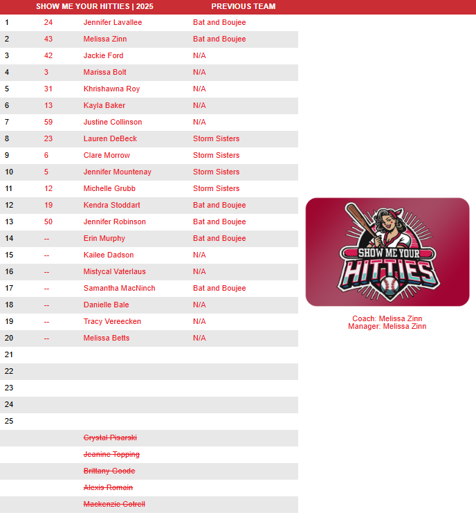 2025 ST. THOMAS WOMENS SLO-PITCH LEAGUE SEASON