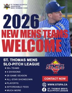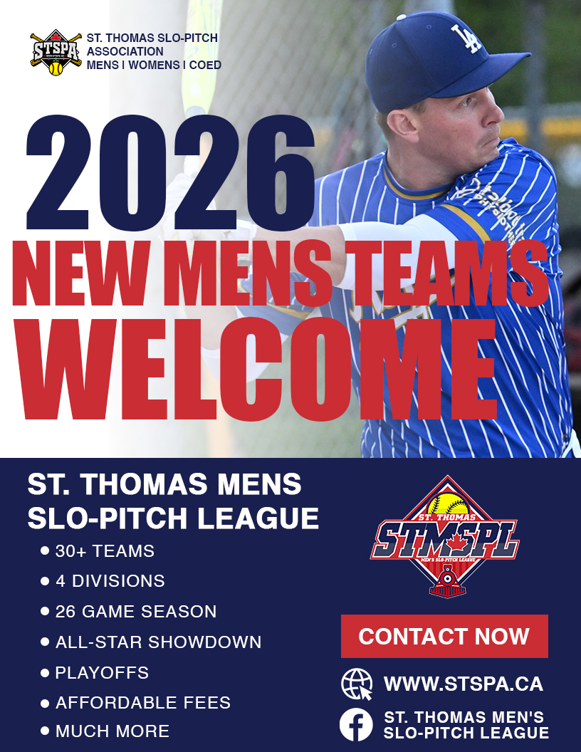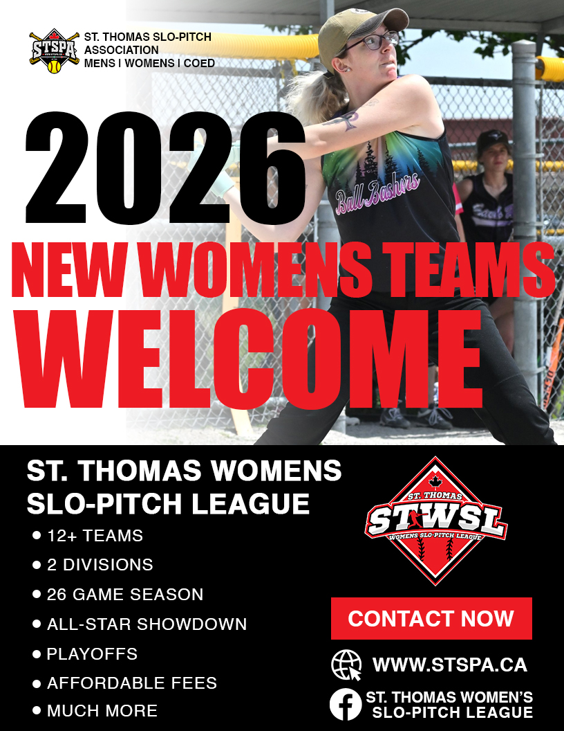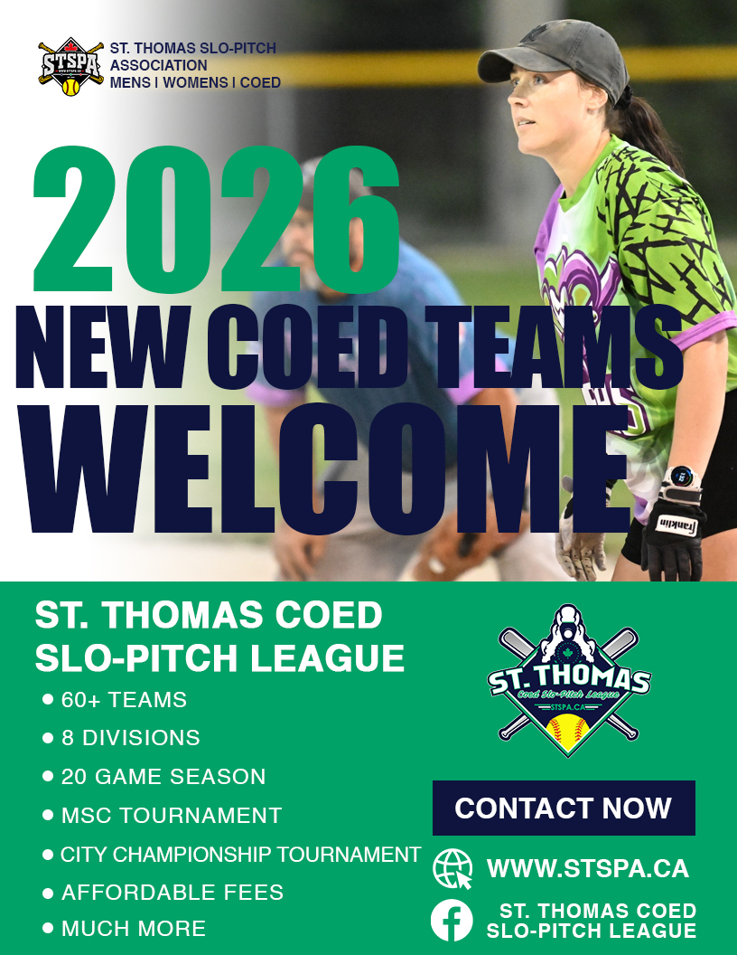 Where are you playing slo-pitch in 2026? Why not join the fastest-growing and most affordable Slo-Pitch Association in Southwestern Ontario? The St. Thomas Coed, Mens, and Womens leagues have something for everyone. We offer a wide variety of competition levels across multiple divisions, including some of the strongest Coed, Mens, and Womens league teams in the area. The Leagues offer exciting regular season play, All-Star events, tournaments, and playoffs. Check out the full list of details below in the League FAQ, and don’t hesitate to call or text our respective League Executives for more information.